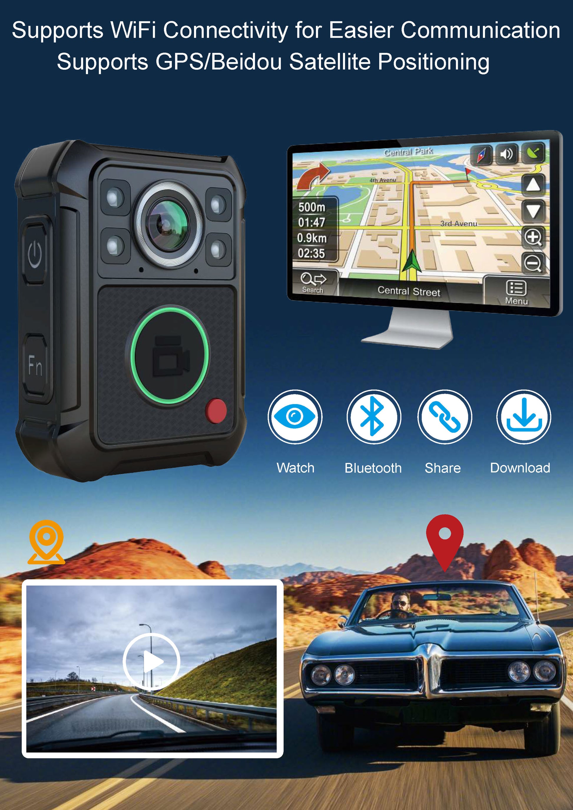 - Memory: Supports 32-256GB SD cards (32GB stores over 16 hours of 1080P video).